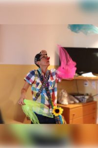 Nach Praktika im Seniorenzentrum & in der Kinderklinik, bildet sie sich laufend in Workshops weiter, dreht Clownvideos für Instagram, schreibt Gedichte, macht Quatsch & übt fleißig Ukulele.